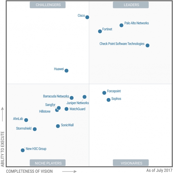Gartner企業(yè)網(wǎng)絡(luò)防火墻魔力象限(2017)