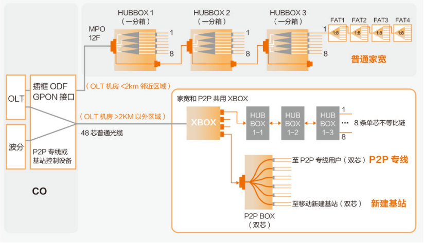 通過ODN 3.0解決方案提供的P2P BOX可以直接輸出雙芯光纜到P2P專線用戶和移動(dòng)基站,特別適合綜合運(yùn)營商進(jìn)行網(wǎng)絡(luò)布局和充分利用骨干光纜資源。